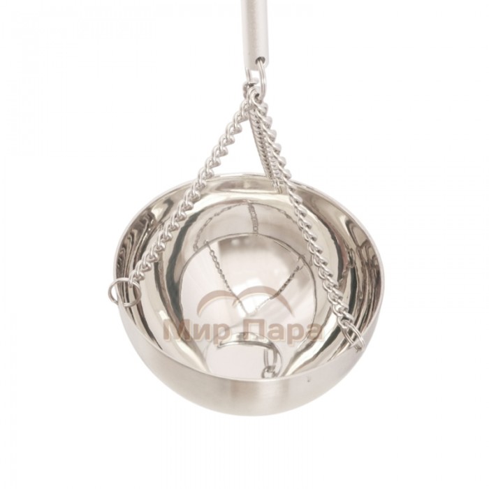 Испаритель удобно подвешивается на цепь, что позволяет равномерно распределять ароматические масла или травы по воздуху парилки, усиливая эффект оздоровления и расслабления.
