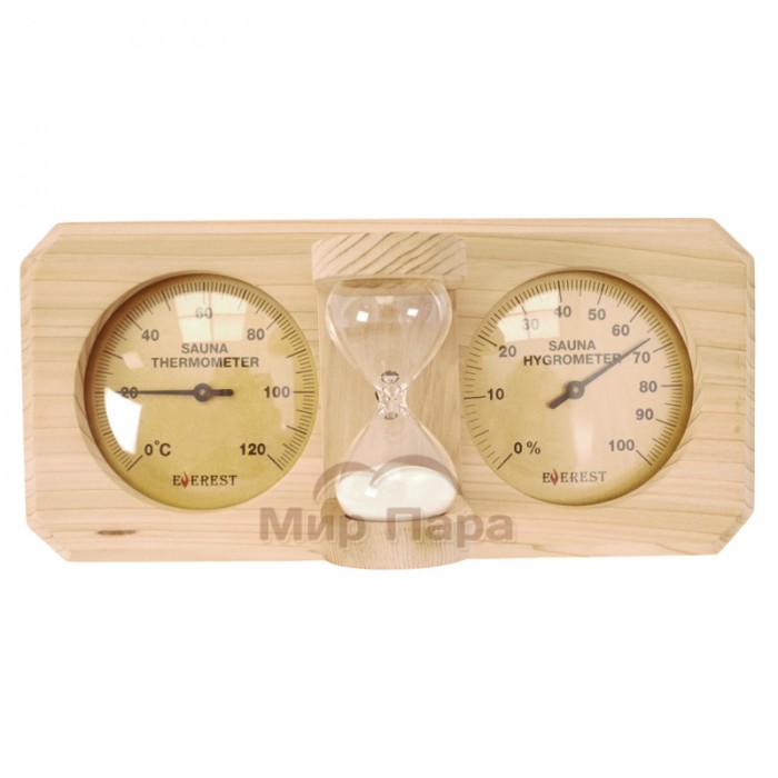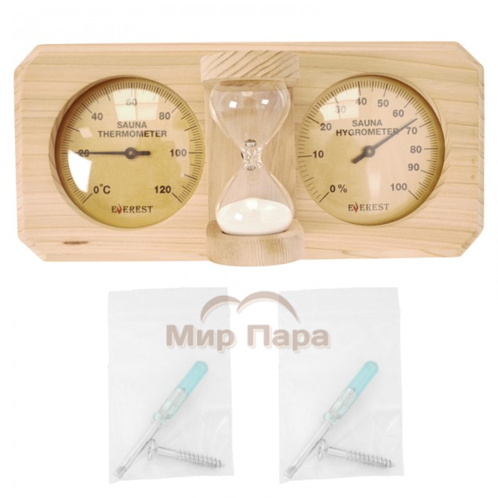 Термогигрометр EVEREST c часами, кедр (TG-07 gold) – это настенный многофункциональный прибор для бани и сауны, который объединяет термометр, гигрометр и часы в одном корпусе. Он позволяет одновременно контролировать температуру, влажность и время нахождения в парной, что делает процедуры более комфортными и безопасными.