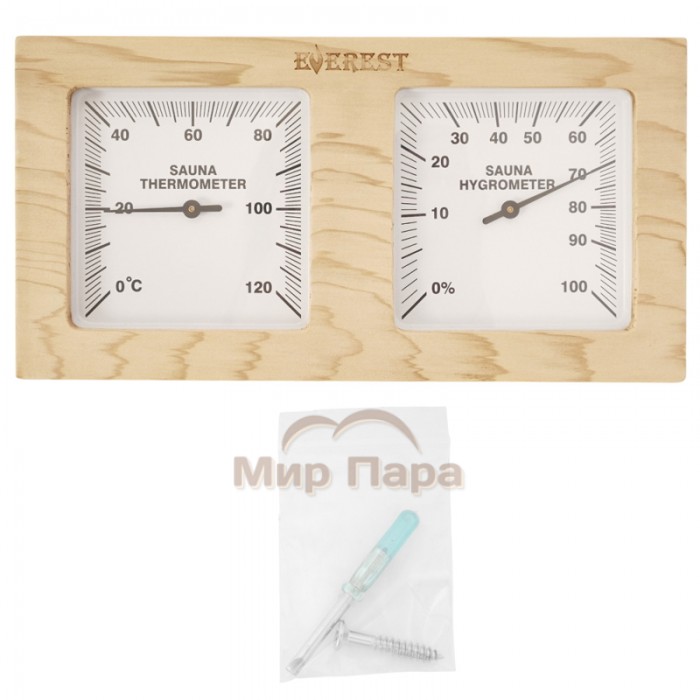 Термогигрометр EVEREST горизонталь, кедр (TG-04 white) – настенный прибор для бани и сауны, который совмещает термометр и гигрометр и позволяет одновременно контролировать температуру и влажность в парной. Он помогает поддерживать комфортный и безопасный режим парения, чтобы не перегревать организм и вовремя корректировать подачу пара или проветривание.