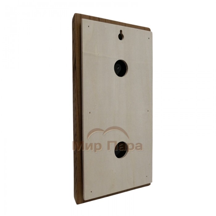 Вертикальное исполнение корпуса экономит место на стене и делает прибор визуально аккуратным и легко читаемым на расстоянии. Корпус выполнен из натурального кедра, устойчивого к влаге и высоким температурам, что особенно важно для эксплуатации в условиях бани и сауны.