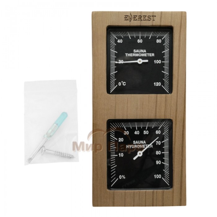 Термогигрометр EVEREST «Вертикаль», кедр (TG-01 black) – это настенный прибор для бани и сауны, совмещающий функции термометра и гигрометра и позволяющий одновременно контролировать температуру и влажность в парной.