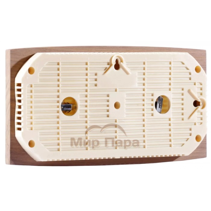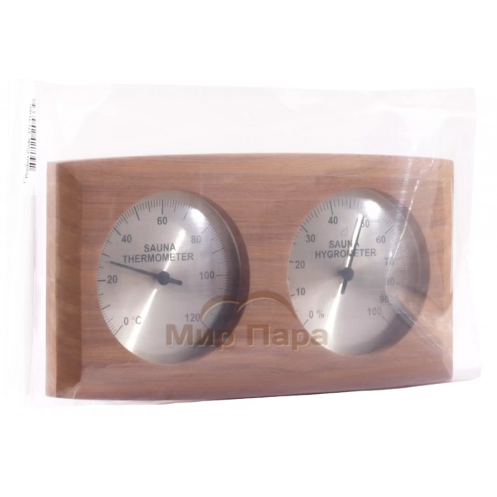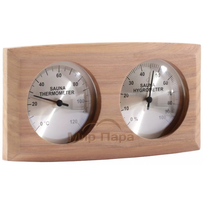 Термогигрометр SAWO 271-THBD имеет классическую прямоугольную форму со скруглёнными углами. В широкой рамке из древесины кедра находится два круглых окошка. Под стеклом каждого окошка расположен графичный циферблат. Один из них - это гигрометр, который с точностью измерит уровень влажности в парной, другой - термометр, который сообщит о температуре воздуха. Данный прибор прекрасно подойдёт для использования в любом парильном помещении.