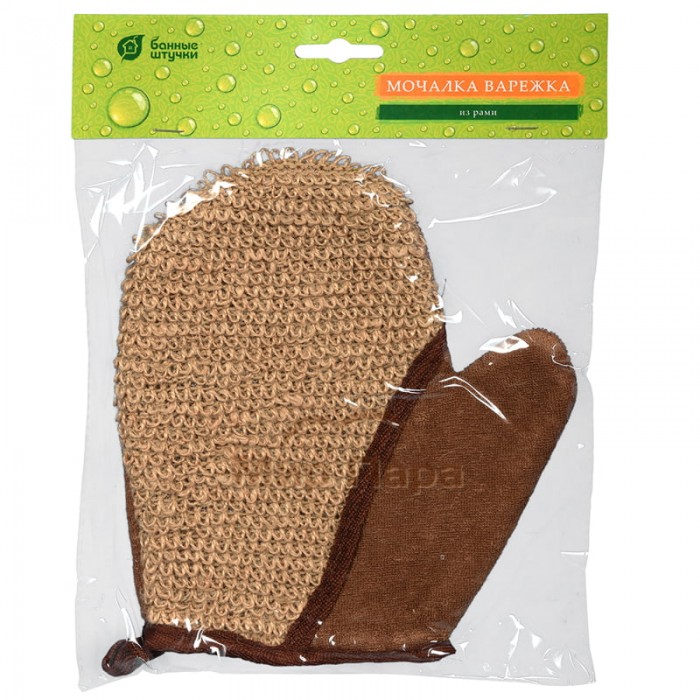 Мочалка из рами, варежка с хлопком, 18х21 см