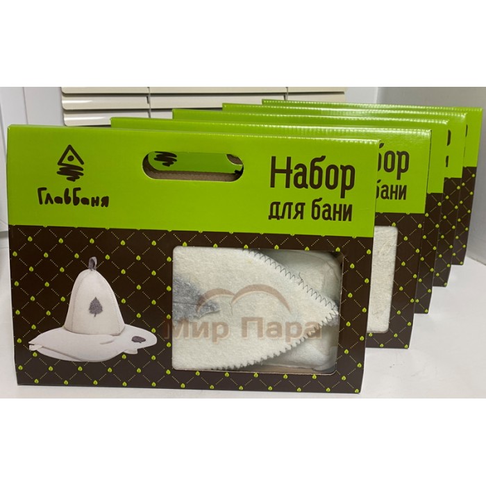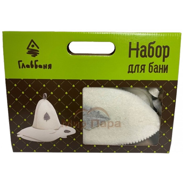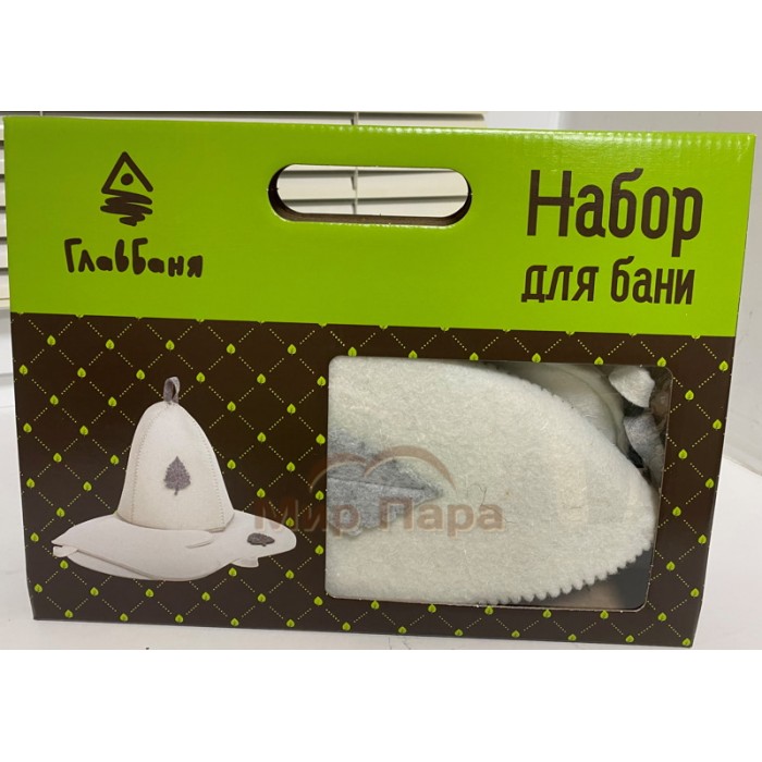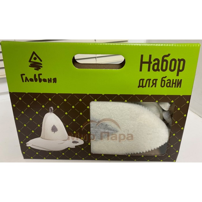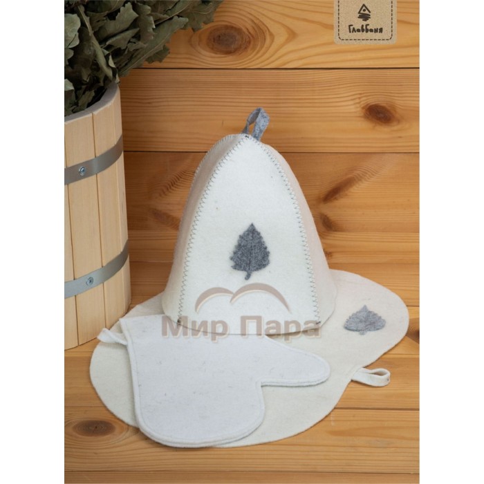 Комплект банный подарочный (шапка, рукавица, коврик) войлок белый