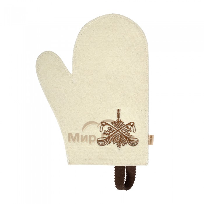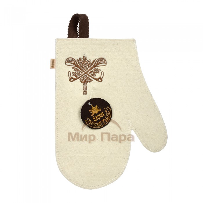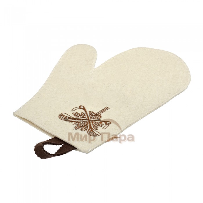 Рукавица белая с вышитым логотипом Банные Штучки (войлок)