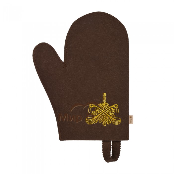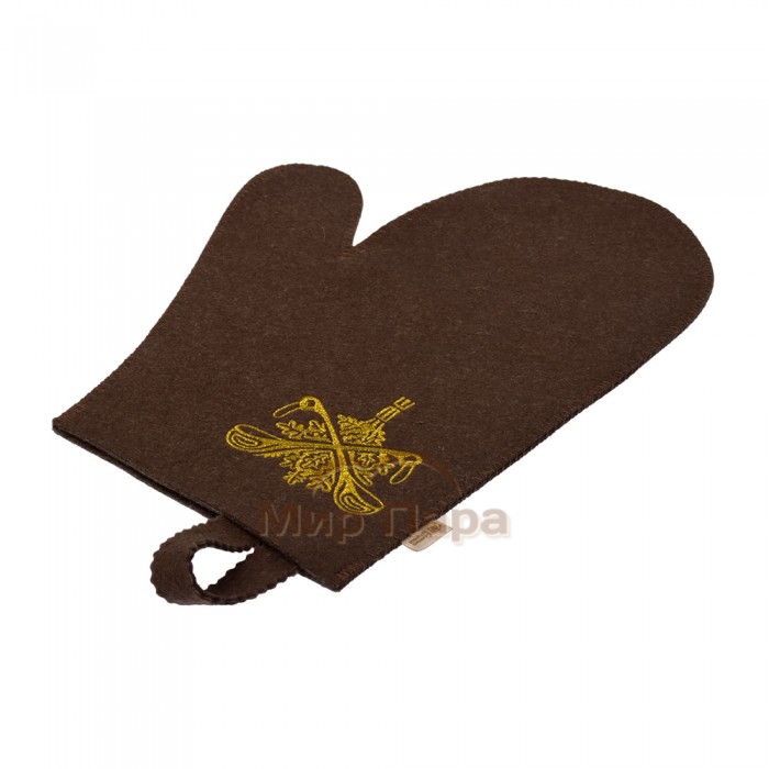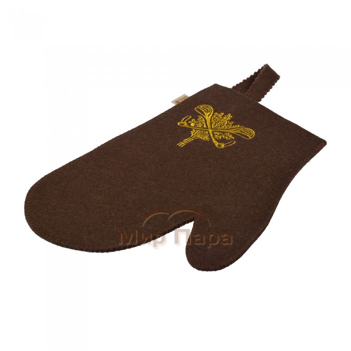 Рукавица коричневая с вышитым логотипом Банные Штучки (войлок)