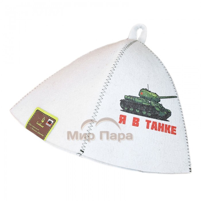 Шапка банная принт «Я в танке» войлок белая