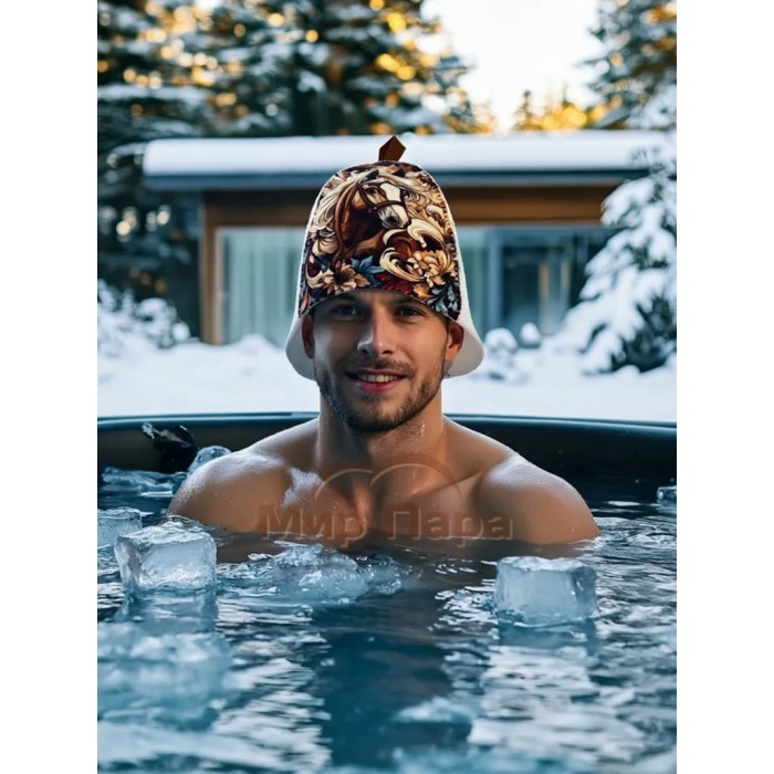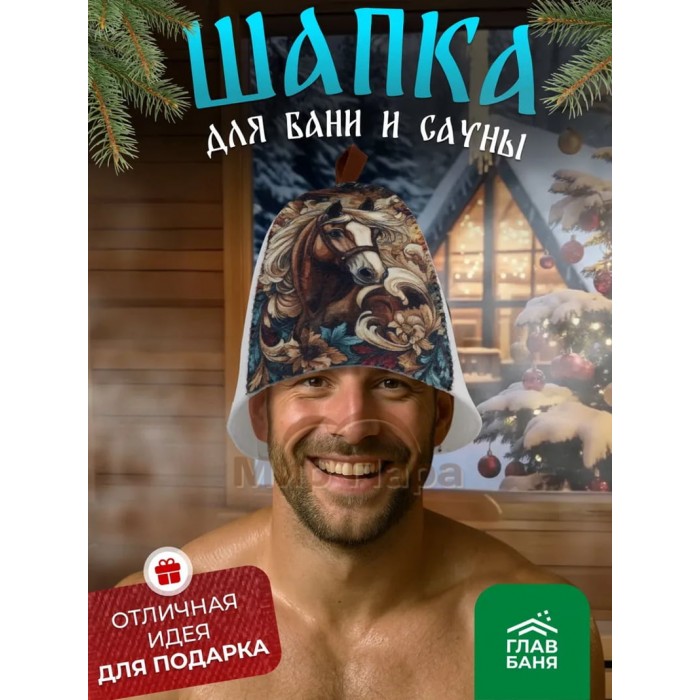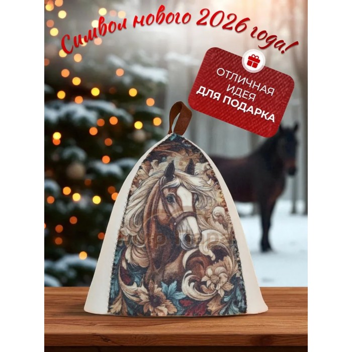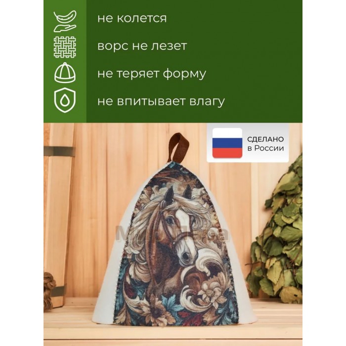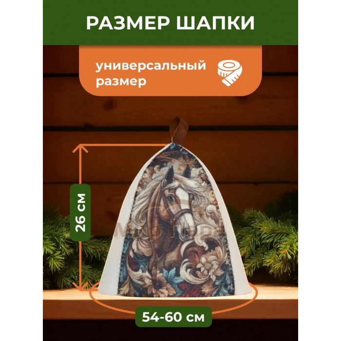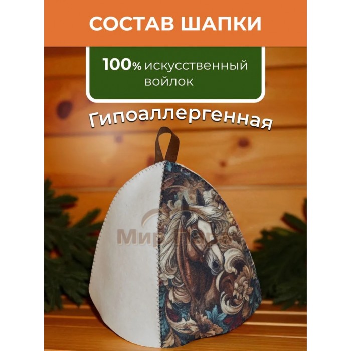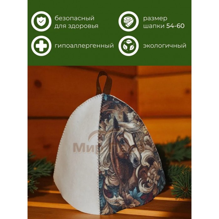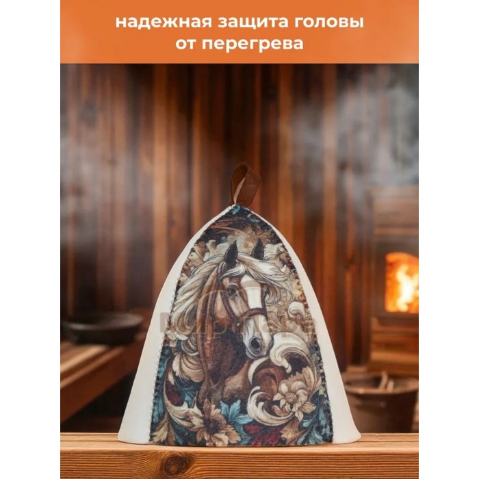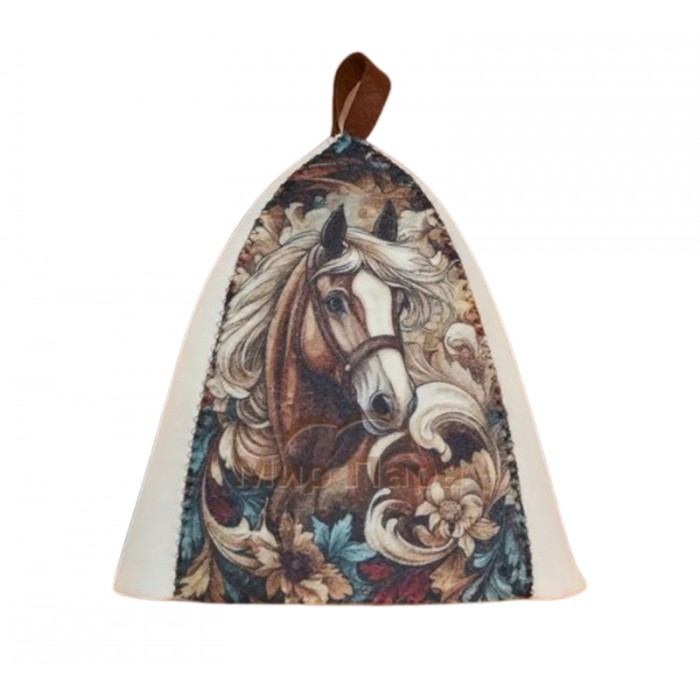 Шапка банная с принтом «Конь Вольный ветер» войлок белый синтетический