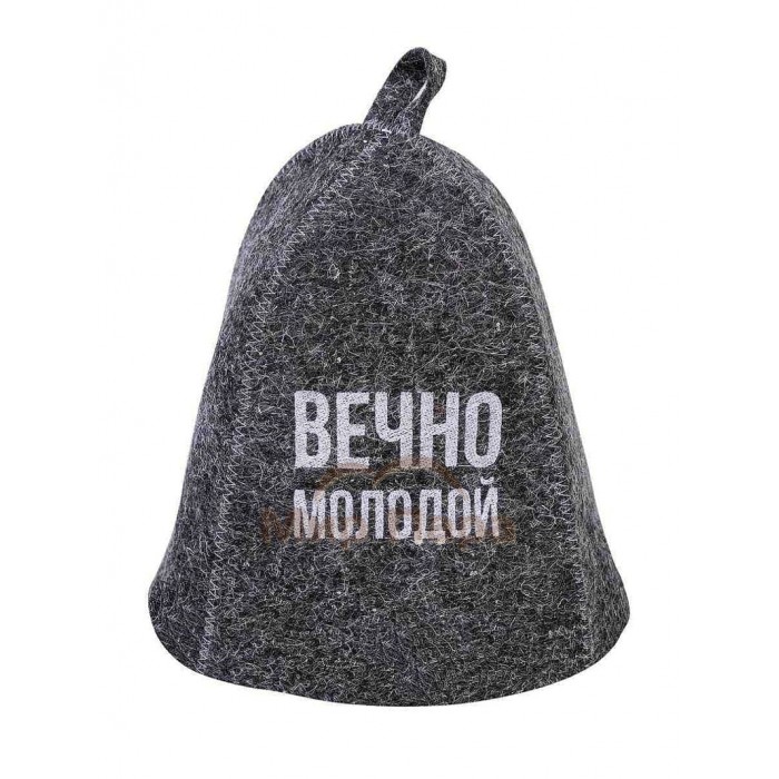 Шапка банная с вышивкой «Вечно молодой» войлок серый