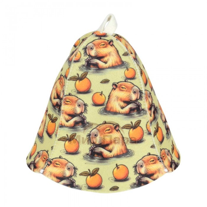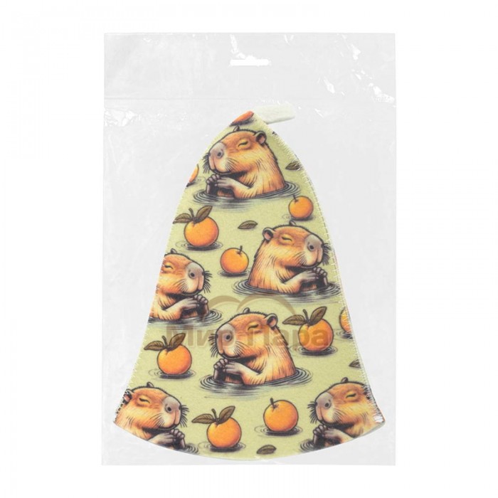 Шапка для бани и сауны с орнаментом «Капибара» войлок