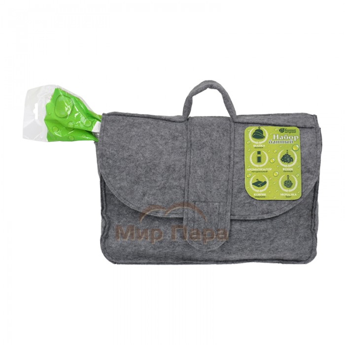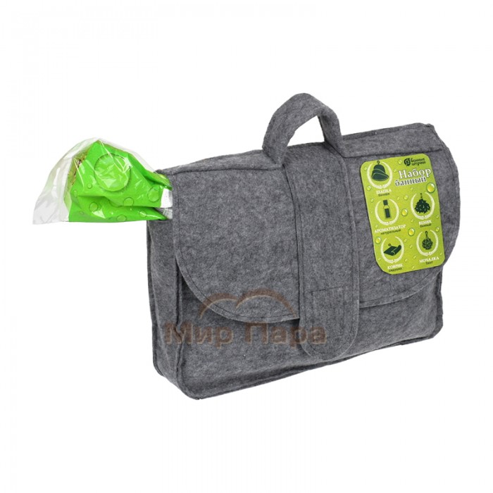Набор банный 6 предметов (портфель, веник, шапка, коврик, мочалка, ароматизатор)