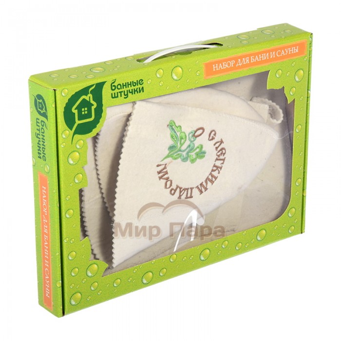 Набор из 3-х предметов (шапка С лёгким паром, рукавица, коврик)