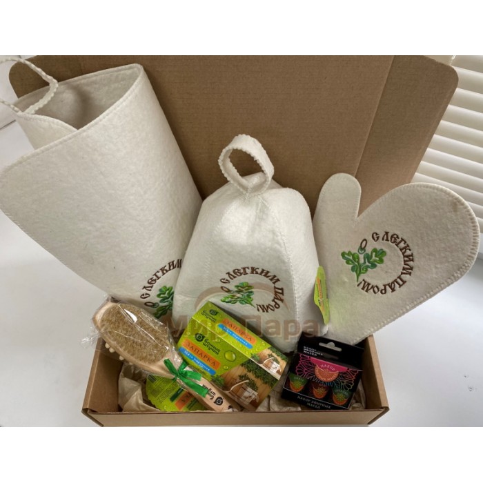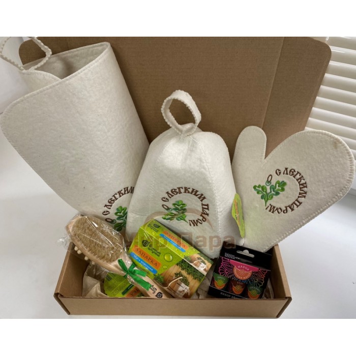 набор масел (3 шт), шапка, коврик, рукавица, щетка-массажер, запарка для бани