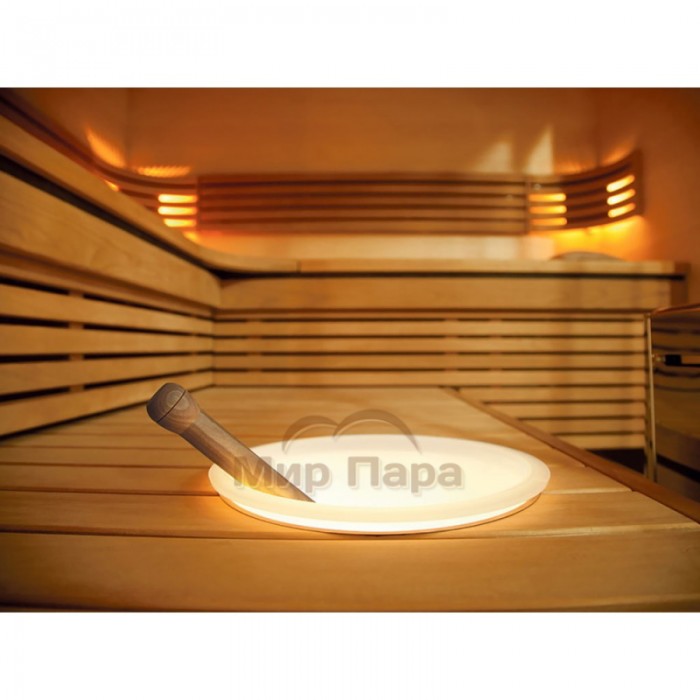 Шайка Harvia пластиковая с подсветкой 7 л – стильный и современный способ подсветить воду и создать особую атмосферу в парной. Прозрачный оптический пластик с оптимальным рассеянием света обеспечивает мягкое, равномерное свечение, а светодиодный модуль в основании красиво подсвечивает воду и полок вокруг шайки. Шайку можно установить на полок или встроить в него, что позволяет гармонично вписать аксессуар в любой дизайн сауны.