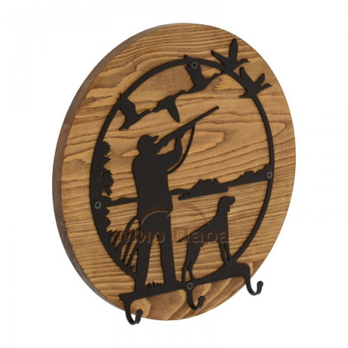 Вешалка брашированная "Охота", 31х31х4 см, 3 крючка, массив сосны
