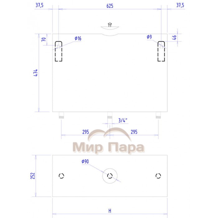 Бак навесной (430 0.5, 80 л. горизонтальный)