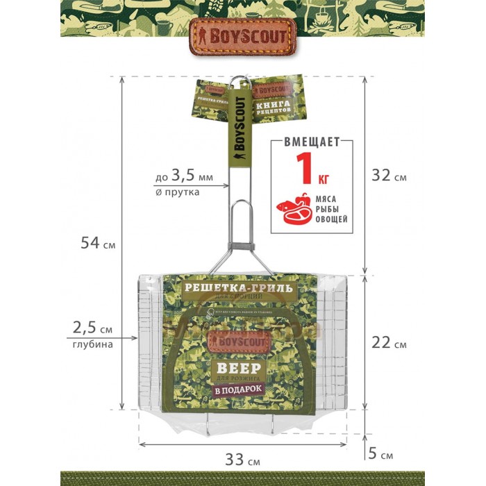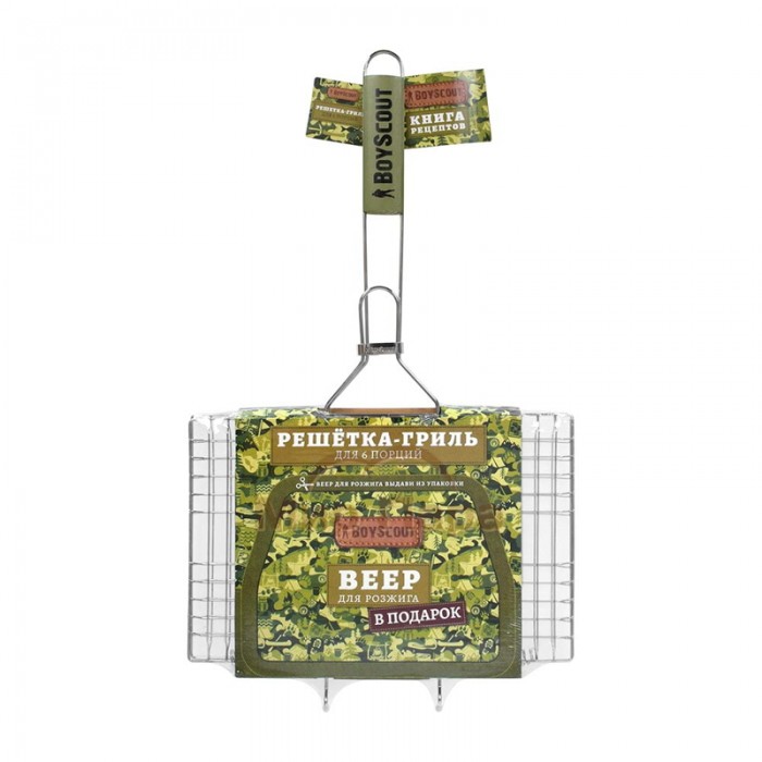 Описание Решетка-гриль для 6 порций блюд + веер для раздувания огня