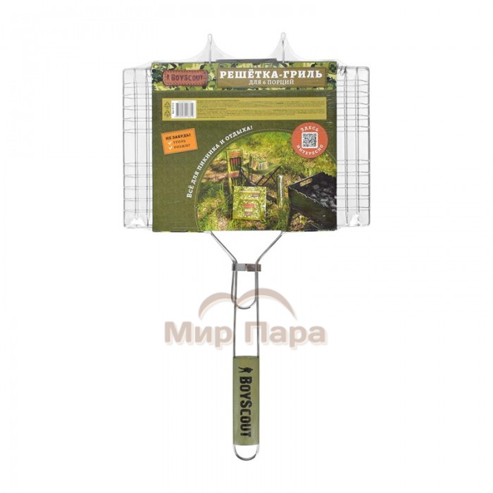 Решётка-гриль для 6 порций - это удобное приспособление для приготовления пищи на открытом воздухе. Она выполнена из высококачественной стали. Решётка оснащена деревянной ручкой с фиксирующим кольцом для надёжной фиксации верхней створки.