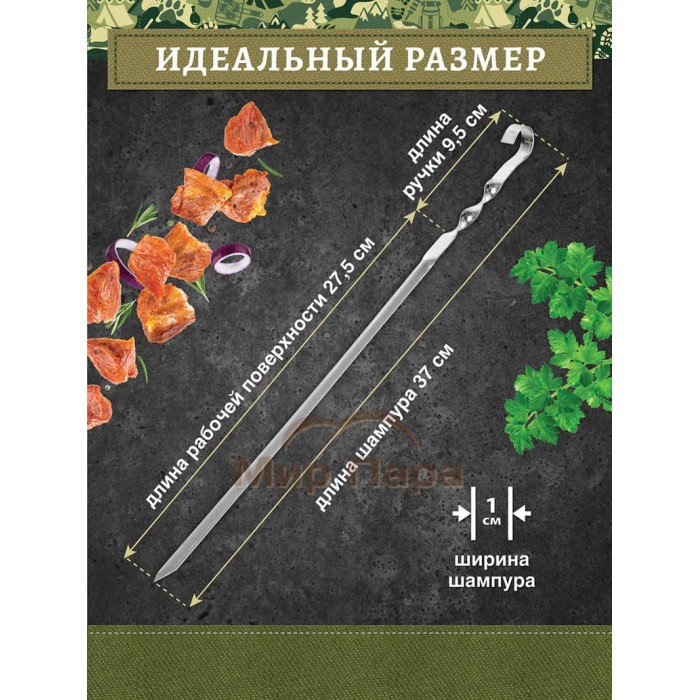 Шампур угловой 370х10х0,8 мм из нерж. стали