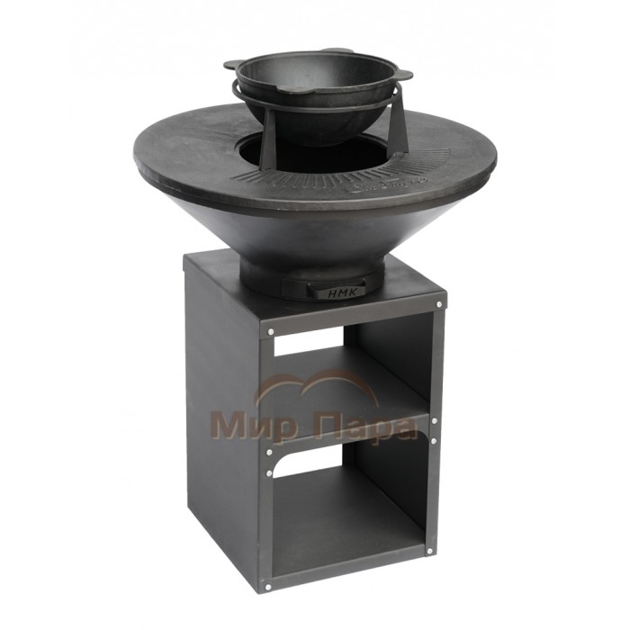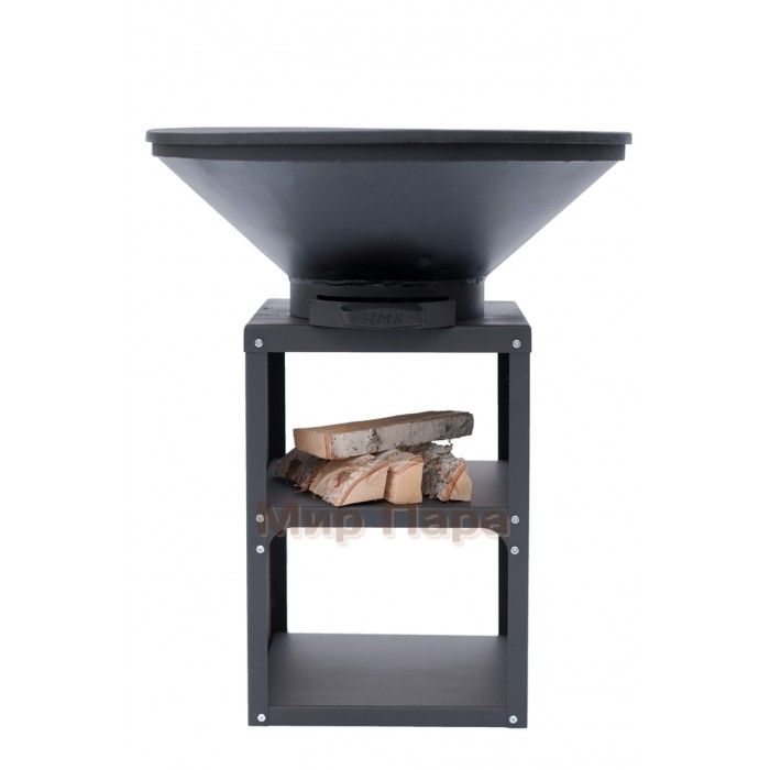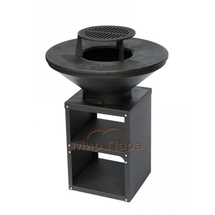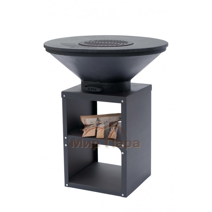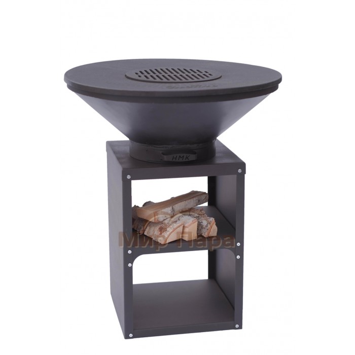 - Конструкция: гриль очаг оснащен зольным ящиком, подставка может выполнять роль дровницы.