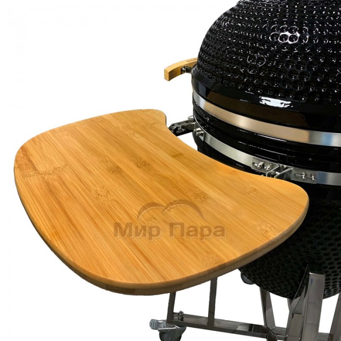 Гриль комплектуется съёмными боковыми столиками из бамбука. В нерабочем положении столики опущены и не мешают убирать гриль в подсобное помещение.
