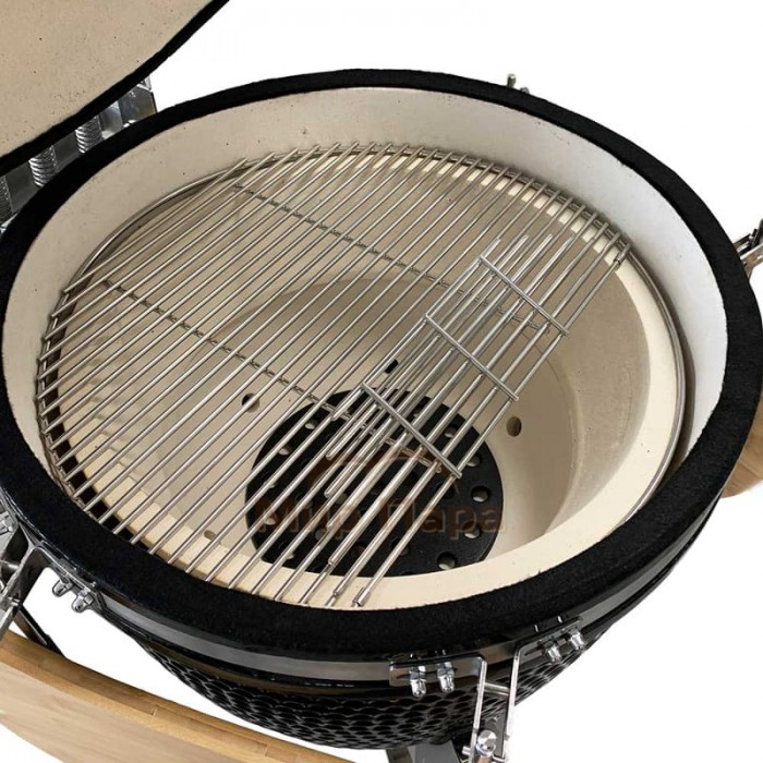 Качественная керамика во время нагрева хорошо запасает тепло, а по окончании горения угля долго остается горячей и поддерживает высокую температуру внутри гриля.