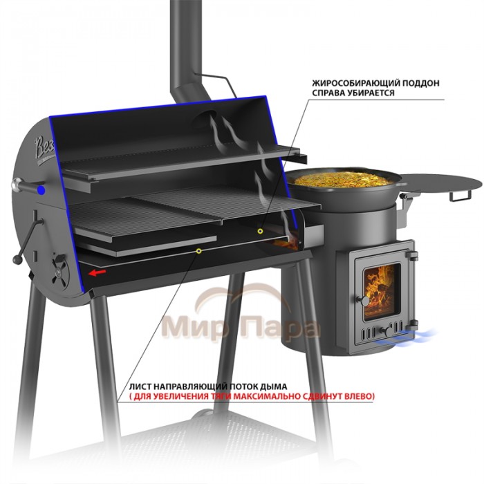 Смокер Везувий «Кудесник 3» — мощное и надежное устройство для холодного и горячего копчения, изготовленное из особо прочной котловой стали 09Г2С толщиной 3 мм. Этот смокер отличается прочностью и устойчивостью к длительным нагрузкам, что обеспечивает долговечность и высокое качество копчения.