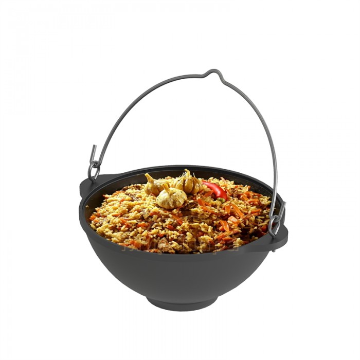 Казан устанавливается на треногу (подставку) над открытым огнем или плитой, но для наилучшего результата мы рекомендуем использовать специальную печь для казана, которую Вы сможете приобрести у нас.