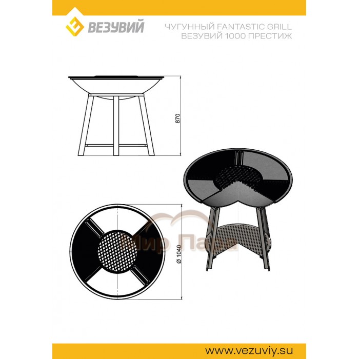 Описание Чугунный Fantastic Grill Везувий Ø 1000 Престиж (чаша+подставка престиж+плита Gurman Ø1000+крышка)