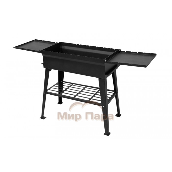 Стильная нижняя решетка, предназначенная для хранения угля, дров и растопочного материала делает мангал Семейный самодостаточным прибором, не требующего комплектации дополнительными элементами.