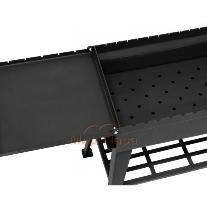 - Функциональность: двусторонний зольный ящик одновременно являющийся ручками для переноса мангала с одного места на другое.