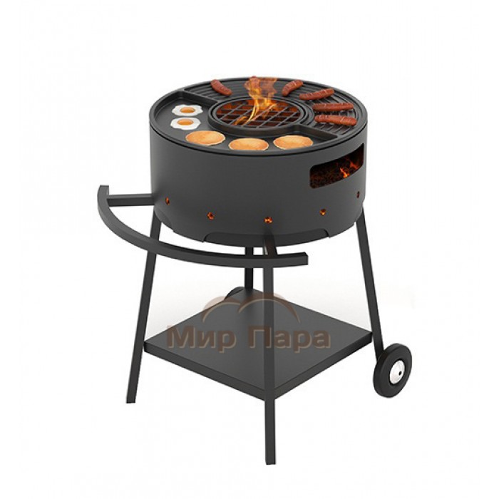 - Материал мангал и подставка: сталь. плита: чугун.