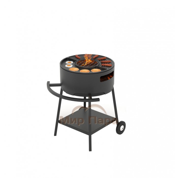 Мангал Дачник, изготовленный из конструкционной стали толщиной 2 мм, имеет круглую форму. Он предназначен для совместного использования чугунной плитой Везувий Gurman диаметром 45 сантиметров.