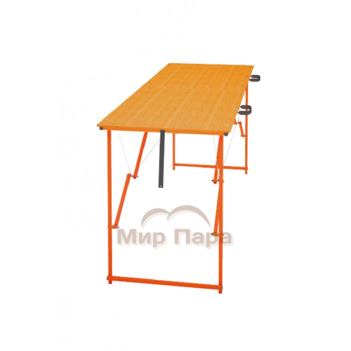 Конструкция полка представляет собой каркас, состоящий из опор, рычагов и тросов, шарнирно соединенных между собой, и фанерного настила. Благодаря такой компановке, полок обладает превосходной устойчивостью и жесткостью конструкции, а также имеет возможность трансформироваться «в книжку» (транспортировочное положение), что позволит Вам сэкономить место в багажнике автомобиля.