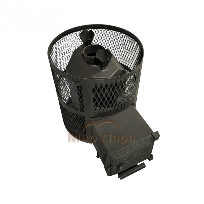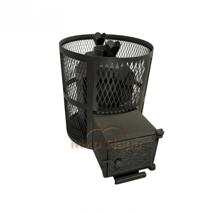 Печь оснащена выносной топкой, оригинальной чугунной дверцей и чугунной колосниковой решеткой. Топка печи ромбической формы изготовлена из стали повышенной прочности марки 09Г2С (ГОСТ 19281-2014) это значительно увеличивает срок службы печи.