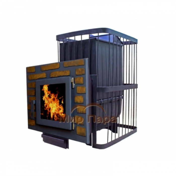 Печь банная ComfortProm «РЕТРО» ЧУГУН ПРЕМИУМ, закрытая каменка, до 26 кубов, со стеклом, декор