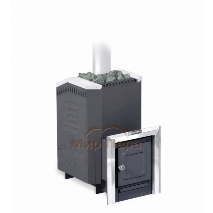 Элементы декора, накладки, портал топки выполнены из жаростойкой хромированной нержавеющей стали INOX AISI-430. Все наружные стальные элементы корпуса печи, топочный канал, каменка и кожух окрашены качественной жаропрочной износостойкой кремнийорганической краской черного матового цвета.