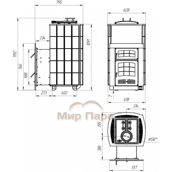 «Чародейка М Русский пар» совместима с фирменными аксессуарами: стартовой трубой и трубой‑каменкой для дополнительной защиты от ИК‑излучения и увеличения объема каменной закладки, баком для воды, а также баком‑теплообменником для нагрева воды в выносном накопительном баке замкнутой системы. Возможность выбора верхнего или бокового выхода дымохода при заказе позволяет гибко вписать печь в планировку небольшой парной и удобно увязать ее с существующей или проектируемой дымоходной системой.