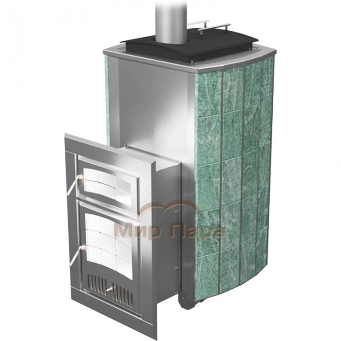 Дровяная печь VVD «Чародейка М Русский пар» в каменной облицовке — компактная «мини»‑версия флагманской печи «Чародейка», рассчитанная на парные объемом 10-20 м3 и ориентированная на любителей мягкого классического русского пара. Топочный агрегат выполнен из коррозионностойкой жаропрочной нержавеющей стали AISI 439 толщиной 4 мм, в версии PRO — из аустенитной стали AISI 304, что обеспечивает высокий ресурс, устойчивость к перегревам и соответствие требованиям к печному оборудованию.