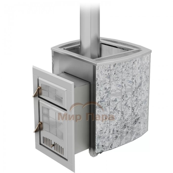 Дровяная печь для бани VVD Чародейка Серпентинит Бархат (сталь AISI 304) – это флагманская модель, рассчитанная на парные объемом 18-30 м3 и интенсивную эксплуатацию. Топочный агрегат выполнен из коррозионностойкой, жаростойкой нержавеющей стали AISI 304 толщиной 4 мм, что обеспечивает высокую долговечность, устойчивость к перегревам и стабильную работу при частых протопках. Треугольные ребра‑регистры на стенках топки усиливают жесткость конструкции и одновременно увеличивают площадь теплообмена, благодаря чему печь быстрее прогревает парную и эффективнее использует тепло топлива.