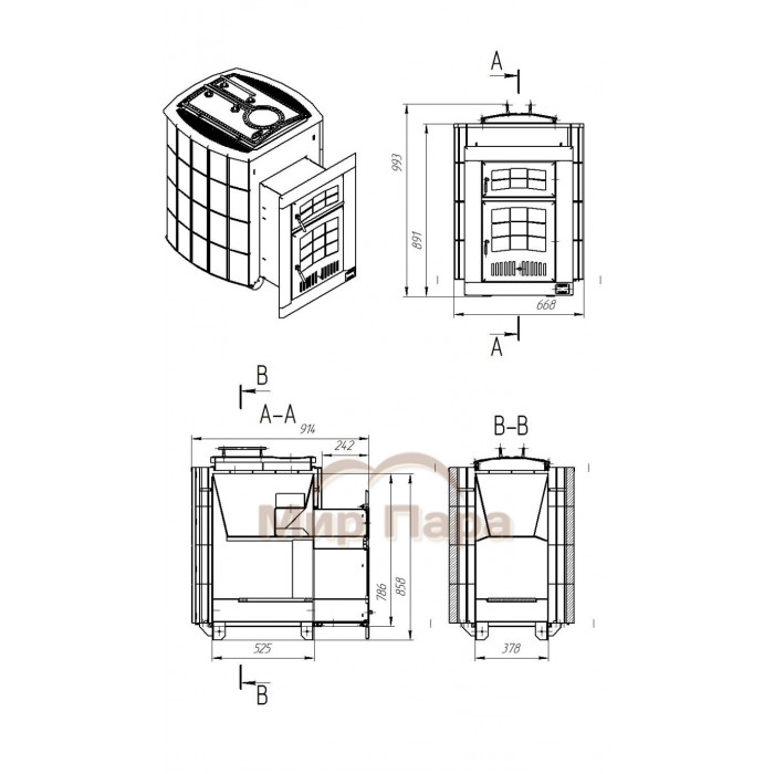 Дровяная печь для бани VVD Чародейка Талькохлорит (сталь AISI 304) – это флагманская модель, рассчитанная на парные объемом 18-30 м3 и интенсивную эксплуатацию. Топочный агрегат выполнен из коррозионностойкой, жаростойкой нержавеющей стали AISI 304 толщиной 4 мм, что обеспечивает высокую долговечность, устойчивость к перегревам и стабильную работу при частых протопках. Треугольные ребра‑регистры на стенках топки усиливают жесткость конструкции и одновременно увеличивают площадь теплообмена, благодаря чему печь быстрее прогревает парную и эффективнее использует тепло топлива.