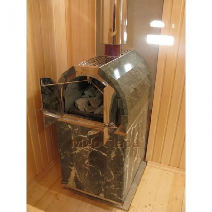 Процесс приготовления «жара-пара», надежно скрыт от глаз, но стоит потянуть за ручку дверки, как распахнутся створки горнила, обнажая внушительную массу раскаленных камней. Будьте внимательны плеская первый раз воду в каменку, закрытые камни имеет более высокую температуру, чем в открытых печах, следовательно выброс пара будет более интенсивным.