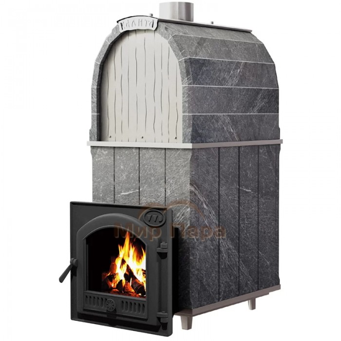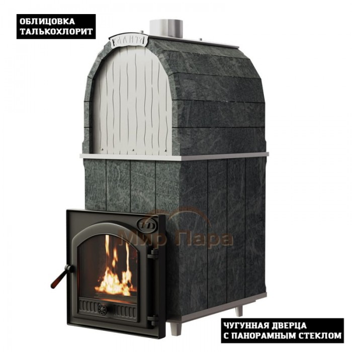 Описание VVD Калита Арочная Pro Талькохлорит (дверца чугунная, с панорамным стеклом)