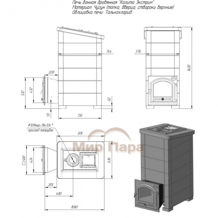 - эффективная система управления конвекционными потоками горячего воздуха делает эксплуатацию печи Калиту-Экстрим удобной и комфортной (открыв заслонку механизма, вы получите максимально быстрый прогрев парного помещения, а закрыв ее - направите все тепло печи на нагрев каменного корпуса печи и массива камней для парообразования);