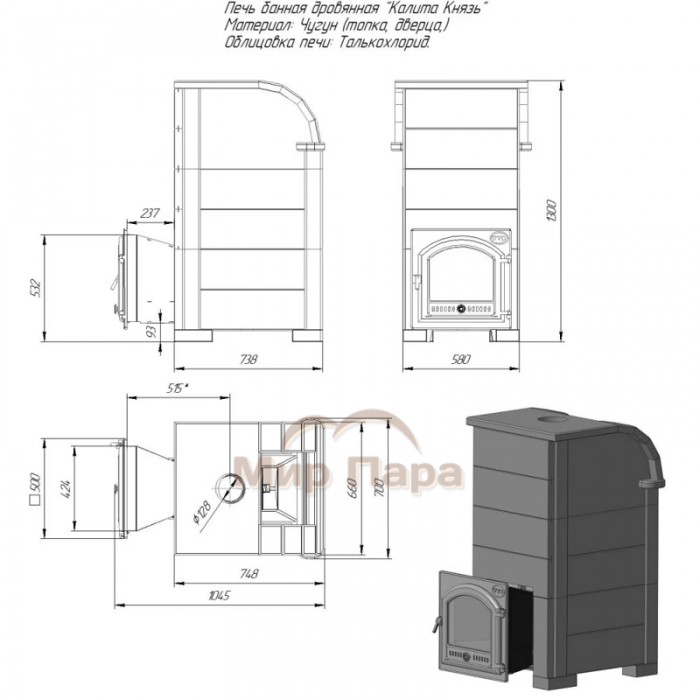 Дровяная печь «Князь-Калита» - мощная чугунная печь с «сибирским характером» для любителей крепко попариться в русской бане.