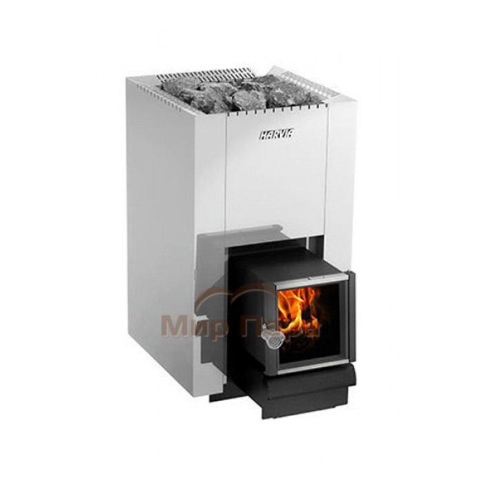 Отличительной особенностью Harvia 22 SL Steel является вынесенная топка, что позволяет подкидывать дрова и управлять нагревом каменки из предбанника.