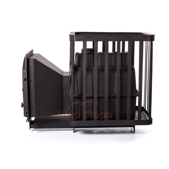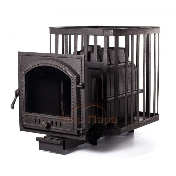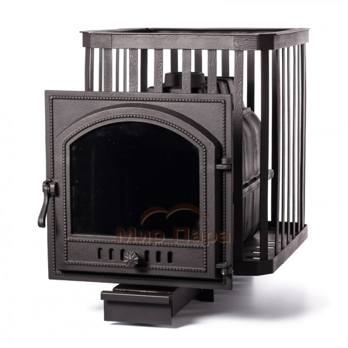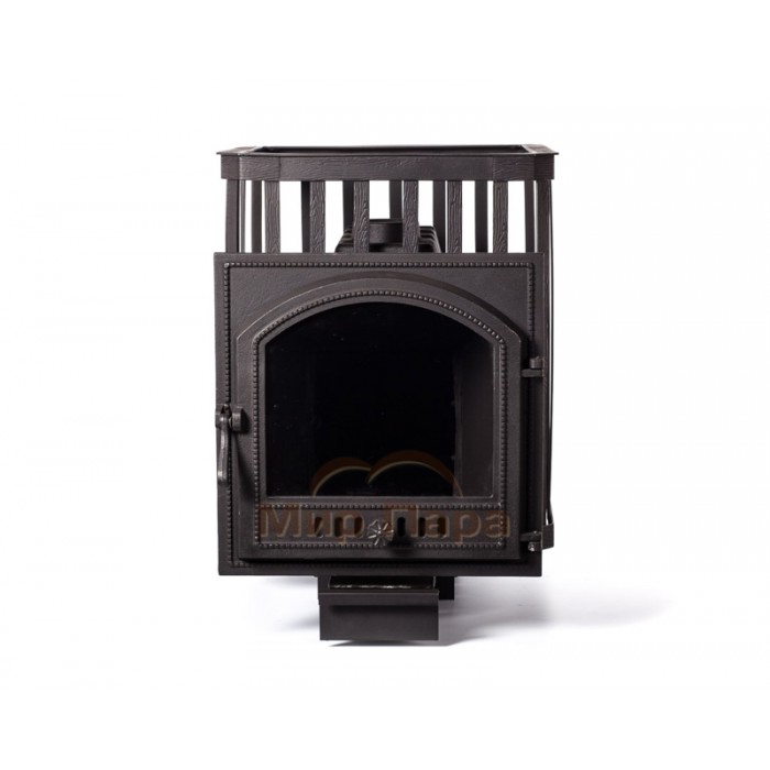 Чугунная печь для бани ПАРОВАР 24 (505) - банная печь каменка с большим панорамным стеклом. Сама печь, колосник и дверца выполнены из высококачественного чугуна и снабжена стальной сеткой корзины под камни. Аккумулятивный тип нагрева.Процесс горения регулируется зольным ящиком. Печь предназначена для отопления парильных помещений 14-24 м3. Топка печи чугунная. Выносной канал 20 см для топки печи из смежного помещения.