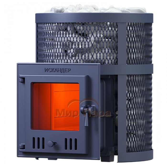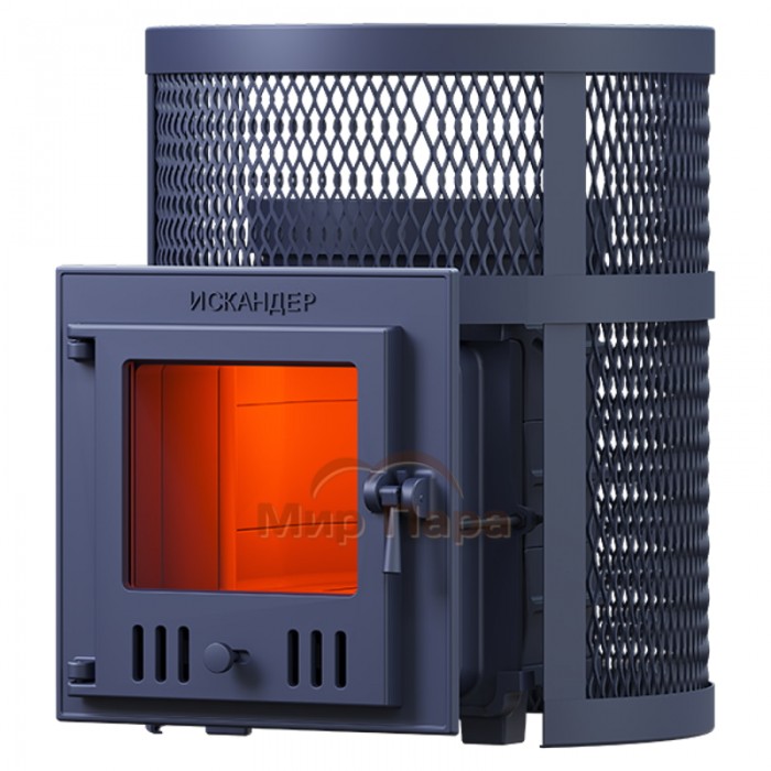 Банная печь Гефест Искандер 18 (M) в сетке с прямым нагревом парообразователя. Печь эконом-класса со стенками толщиной 14 мм, быстро нагревает воздух в парной и производит качественный мелкодисперсный пар за счёт теплоёмкой каменки, оснащённой теплосъёмными шипами на нижней поверхности.