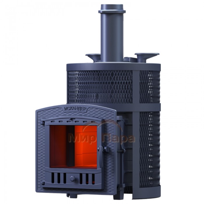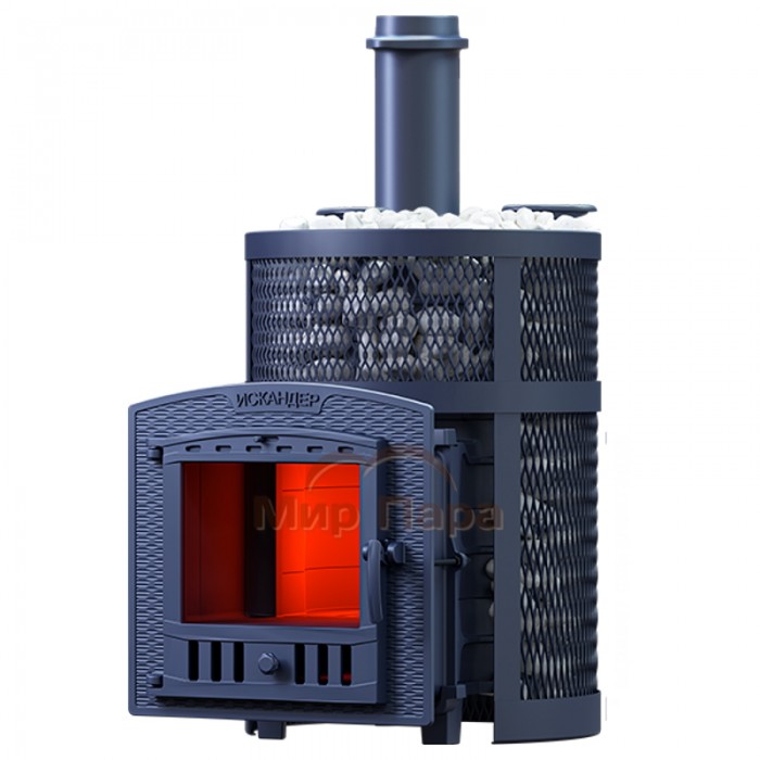 Чугунная банная печь Искандер предназначена для отопления парного помещения и генерации мелкодисперсного пара. Печь предназначена для использования совместно с кожухом-сеткой с дальнейшей загрузкой камней, увеличивающих теплоёмкость и снижающих тепловое излучение. Печь рассчитана для создания паровых режимов «русская баня» в условиях индивидуального использования.