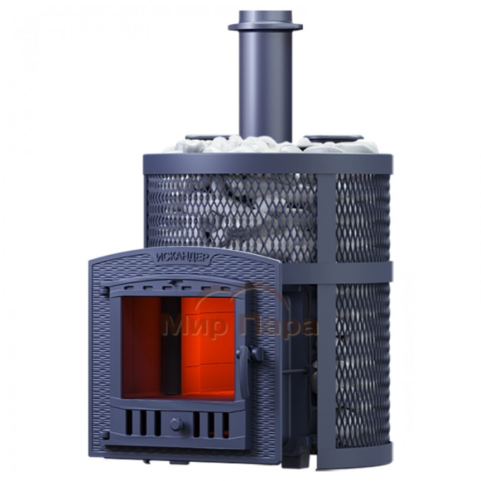Модификация "Искандер ЗК" - это печь "Искандер" с закрытой каменкой, двумя паровыми пушками и дверцей для залповой подачи пара.